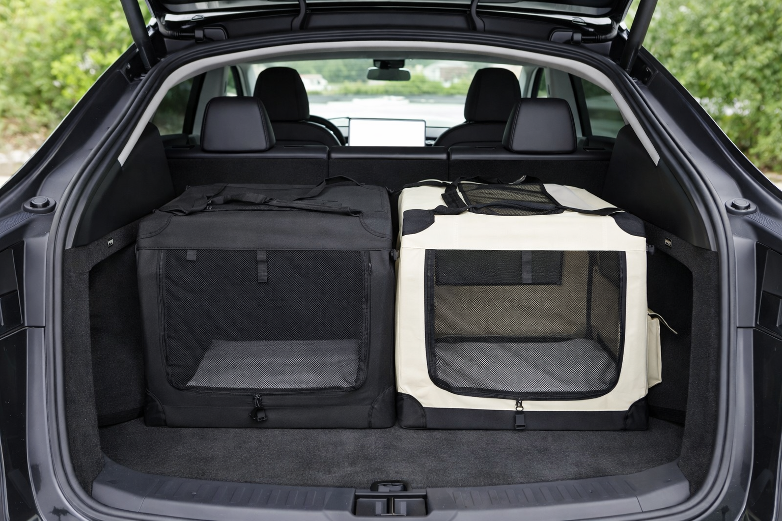 Giv din hund en tryg og komfortabel transport med vores praktiske og sammenklappelige transportbur. Buret er ideelt til brug i bilen – f.eks. i bagagerummet på en Tesla Model Y – og giver din hund et sikkert og roligt sted under køreturen.